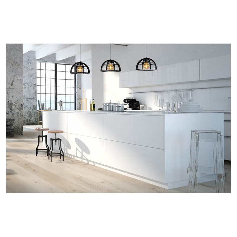 Made of high quality metal, the semi-circular lampshade of the Dikra pendant lamp has a modern finish. The horizontal lines and the vertical arches cross at three points. The construction thus forms a coherent whole which leaves plenty of room for the play of light. The light points are adjustable in height and are easily connected to a dimmer. Let the Dikra shine by itself or hang it in series. Or choose the version with two or three light points.