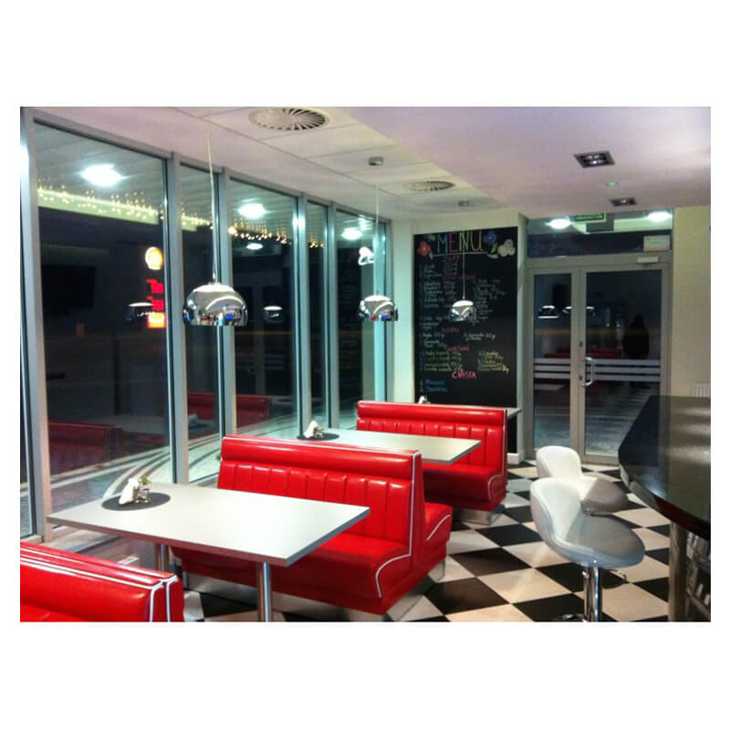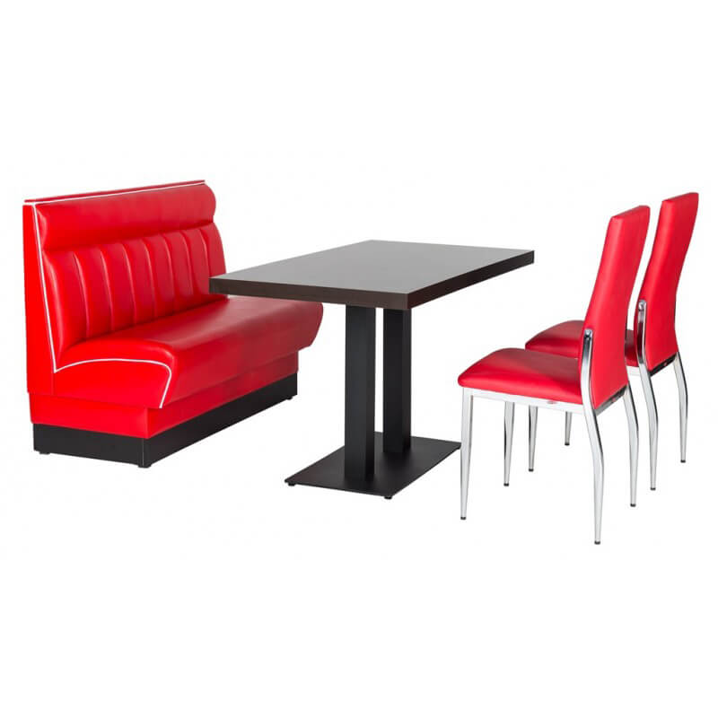 Old-school American sofa with a fine border that provides a contrast. In addition, it is also easy to maintain. It is suitable for all catering establishments and with its width of 120 cm it can accommodate 2 person.