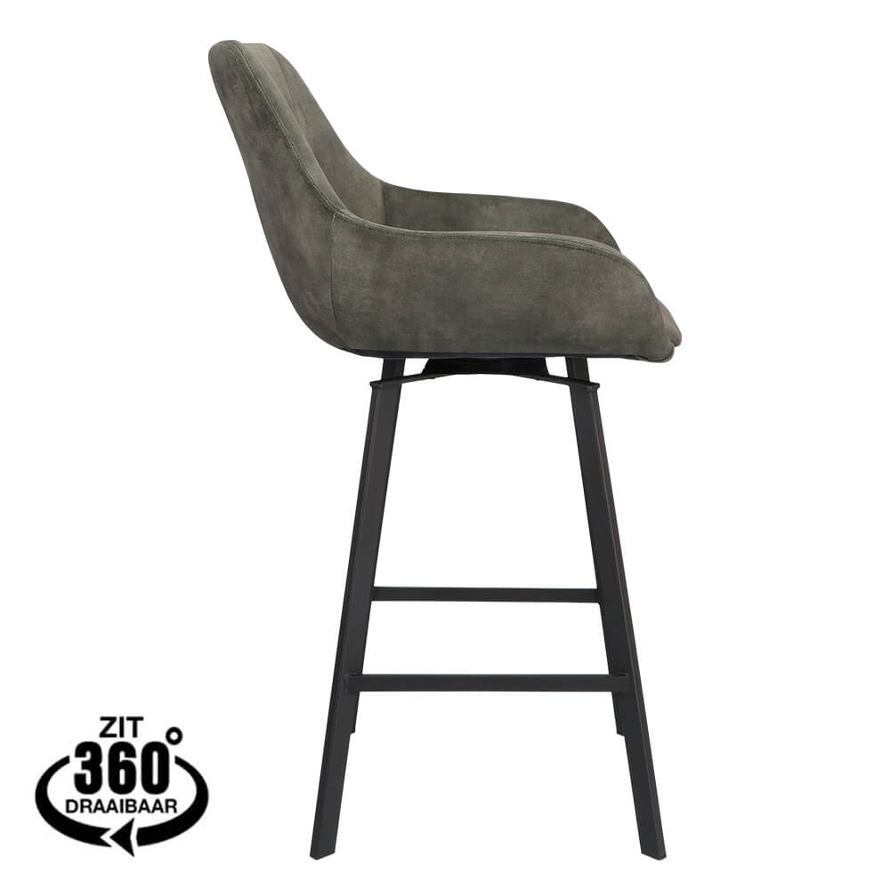 Bring refinement and versatility to your interior with this velvet bar stool, available in a range of stylish colors. The soft velvet upholstery offers a luxurious appearance and ultimate comfort, while the sleek black metal frame adds a modern, industrial look. The 360° swivel function makes the bar stool exceptionally practical, ideal for dynamic hospitality venues where flexibility and style meet.