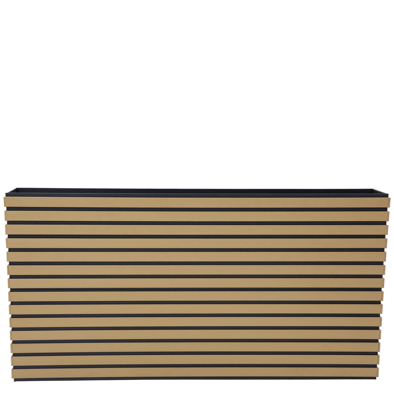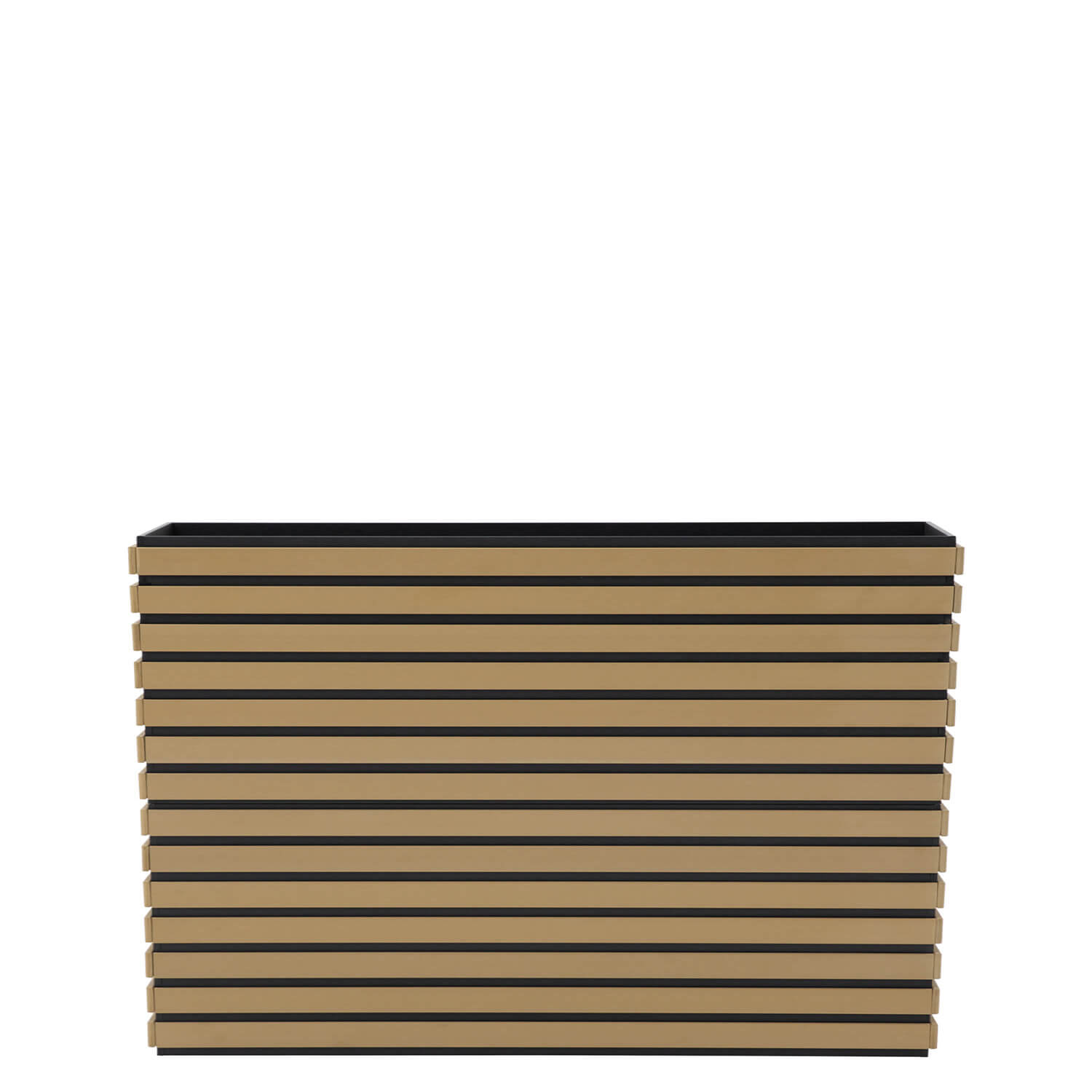 Bring natural elegance to your space with this high-quality planter, crafted in a stylish combination of natural wood veneer and black accents. Available in various sizes, this planter offers versatile options to enhance your interior or patio. The sleek horizontal lines and durable materials make it a timeless design that is both decorative and functional.