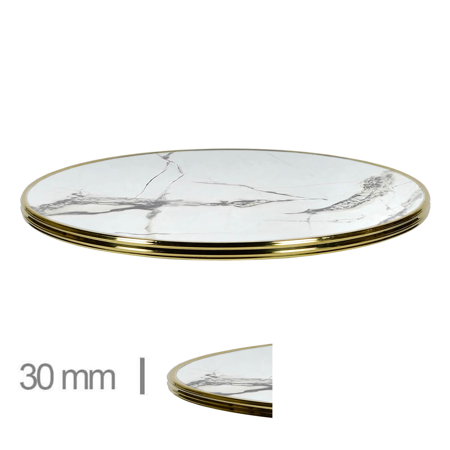 Plateau de Table Rond Avec Cerclage Laiton Pour Café, Restaurant et Horeca – Werzalit Bianca – 3 cm D’épaisseur