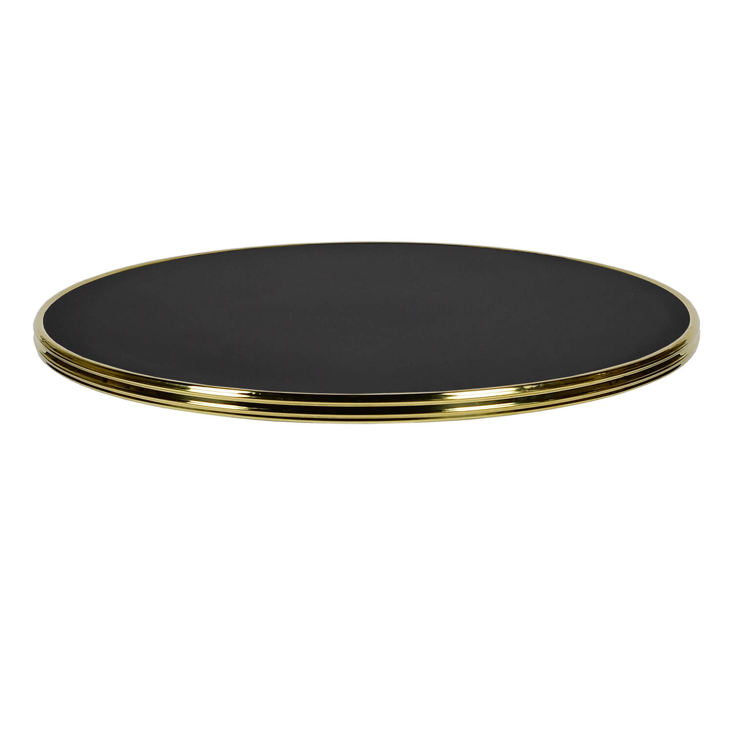 Plateau de Table Rond Avec Cerclage Laiton Pour Café, Restaurant et Horeca – Werzalit Noir – 3 cm D’épaisseur