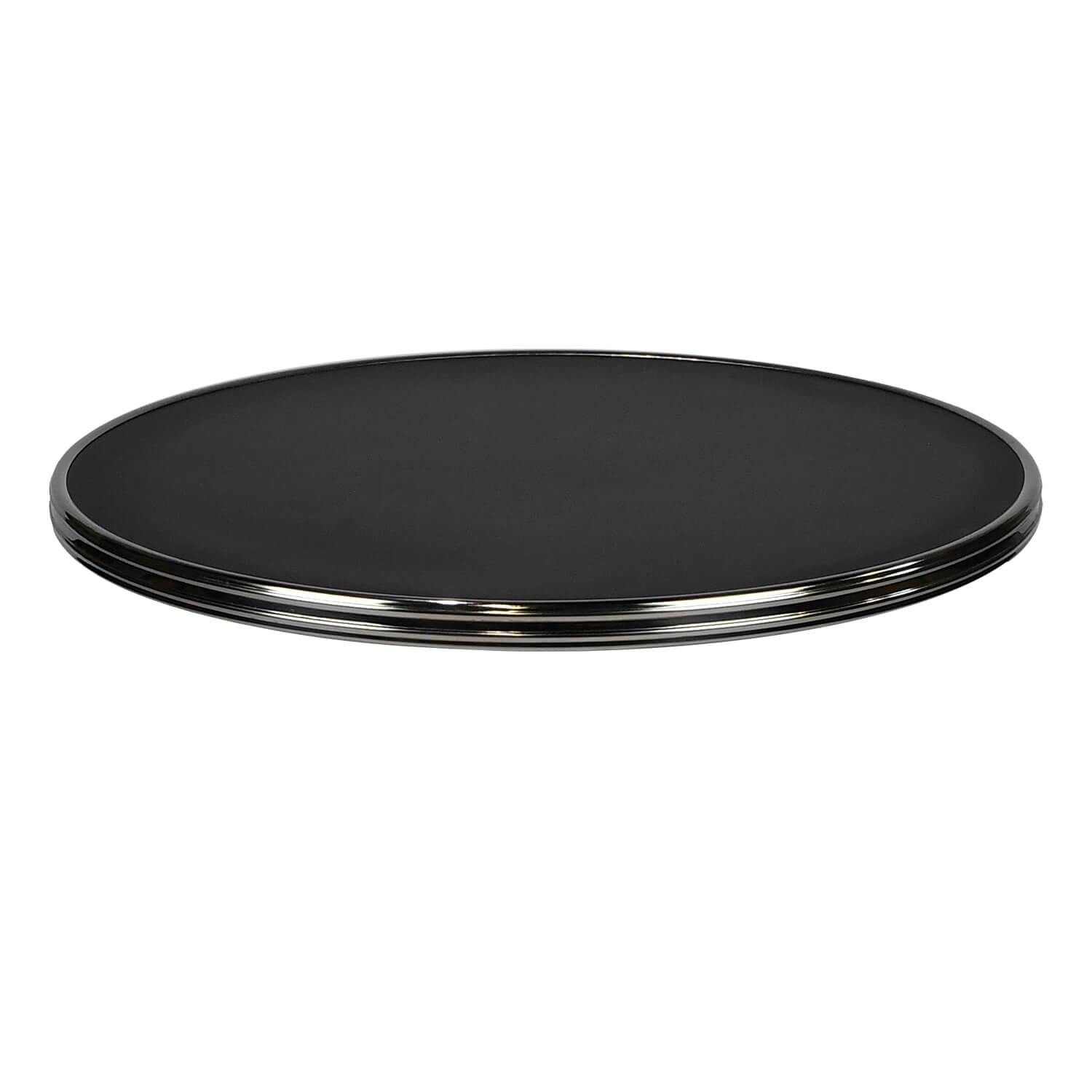 Table De Terrasse Ronde Avec Cerclage Chrome Pour Café, Restaurant Et Horeca – Werzalit Noir – 60 Cm